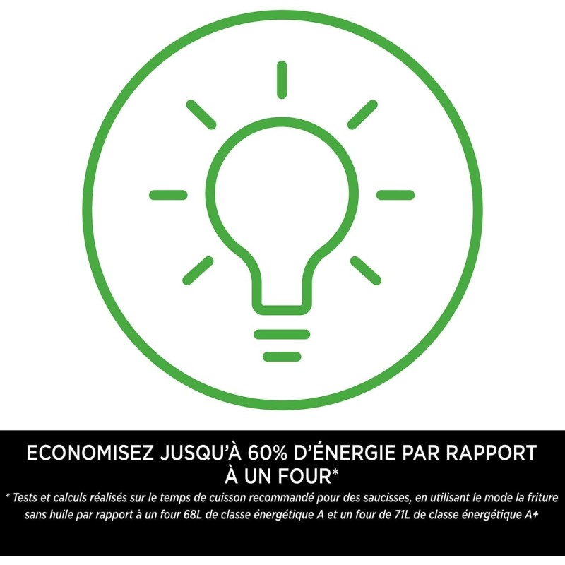FRITURE À L'AIR : Jusqu'à 75 % de matières grasses en moins par rapport aux méthodes de friture traditionnelles (testé contre des frites coupées à la main et frites en profondeur); MODE COMBI-VAPEUR: Combine la vapeur et la convection
