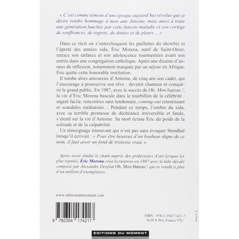 Après avoir étudié le chant auprès des professeurs d'art lyrique les plus réputés, Eric Morena créa la surprise en 1987 avec le tube décalé composé par Alexandre Desplat Oh, Mon Bateau ! qui se vendit à plus d'un million d'exemplaires.